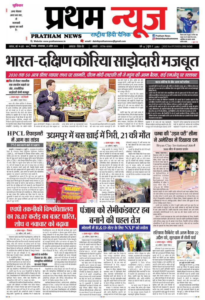 Homeई पेपर ई पेपर E paper 21-4-2026 By Shiv Kumar April 21, 2026 0 2 FacebookTwitterPinterestWhatsApp Post Views: 467 Like this:Like Loading... Related Share FacebookTwitterPinterestWhatsApp Previous articleE paper 20-04-2026 Shiv Kumarhttps://prathamnews.in/ Related Articles ई पेपर E paper 20-04-2026 जालंधर अमरनाथ यात्रा 2026: श्रद्धालुओं में भारी उत्साह, 3 दिनों में 2 लाख से अधिक पंजीकरण; जानें नियम और पंजाब के मुख्य रजिस्ट्रेशन केंद्र जालंधर पंजाब देश का पहला राज्य बन गया है जहां स्वास्थ्य बीमा योजना लागू की गई है – मोहिंदर भगत LEAVE A REPLY Cancel reply Comment: Please enter your comment! Name:* Please enter your name here Email:* You have entered an incorrect email address! Please enter your email address here Website: Save my name, email, and website in this browser for the next time I comment. Latest Articles ई पेपर E paper 20-04-2026 जालंधर अमरनाथ यात्रा 2026: श्रद्धालुओं में भारी उत्साह, 3 दिनों में 2 लाख से अधिक पंजीकरण; जानें नियम और पंजाब के मुख्य रजिस्ट्रेशन केंद्र जालंधर पंजाब देश का पहला राज्य बन गया है जहां स्वास्थ्य बीमा योजना लागू की गई है – मोहिंदर भगत गुरदासपुर ‘बेटी बचाओ-बेटी पढ़ाओ’ स्कीम तहत गांव डेहरीवाल किरण में जागरूकता कैंप लगाया पंजाब पंजाब के ऐतिहासिक त्योहार बसंत का रंग हर साल चाइना की डोर से फीका पड़ जाता है: डॉ. आशीष सरीन Load more